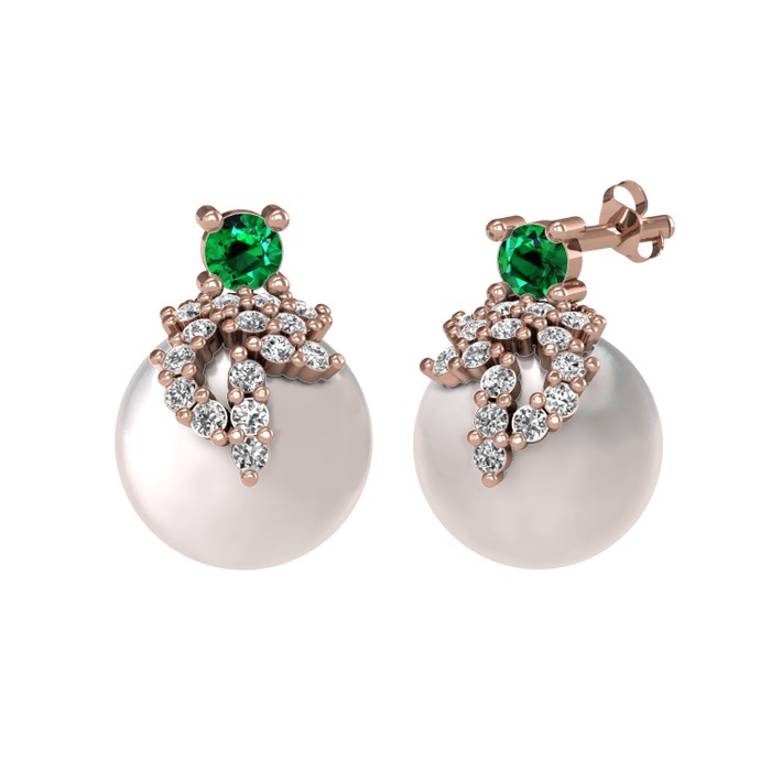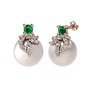 Yeşil kuvars, beyaz zirkon ve inci 14 ayar rose altın küpe