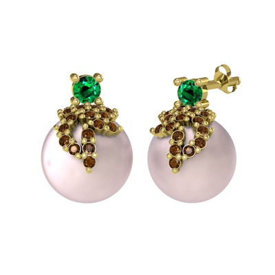 Yeşil kuvars, dumanlı kuvars ve pembe inci 18 ayar altın küpe