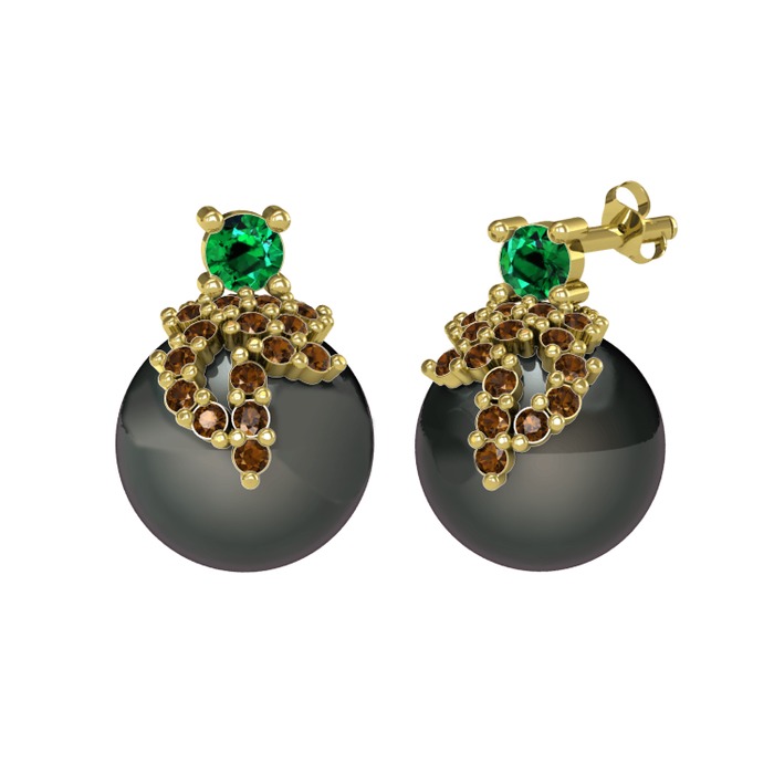 Yeşil kuvars, dumanlı kuvars ve siyah inci 925 ayar altın kaplama gümüş küpe