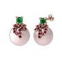 Yeşil kuvars, kök yakut ve pembe inci 14 ayar rose altın küpe