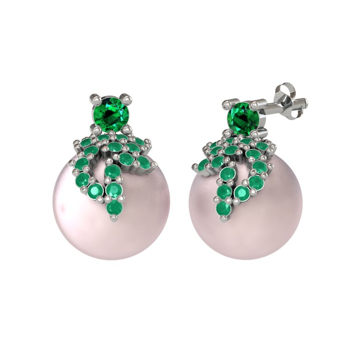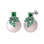 Yeşil kuvars, kök zümrüt ve pembe inci 18 ayar beyaz altın küpe