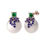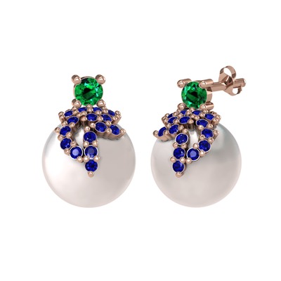 Yeşil kuvars, lab safir ve inci 14 ayar rose altın küpe