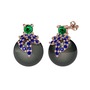 Yeşil kuvars, lab safir ve siyah inci 18 ayar rose altın küpe
