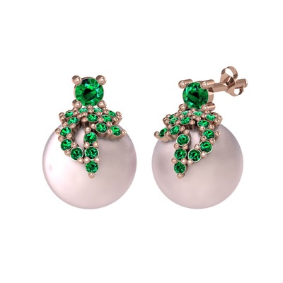 Yeşil kuvars ve pembe inci 14 ayar rose altın küpe