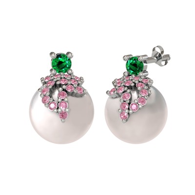Yeşil kuvars, pembe kuvars ve inci 925 ayar gümüş küpe