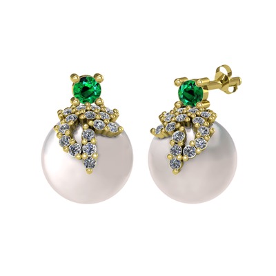Yeşil kuvars, pırlanta ve inci 8 ayar altın küpe (0.352 karat)