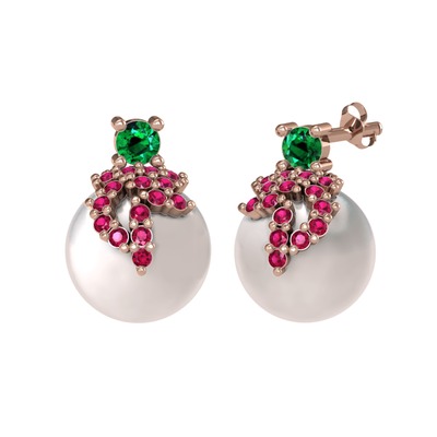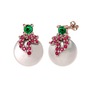 Yeşil kuvars, rodolit garnet ve inci 8 ayar rose altın küpe