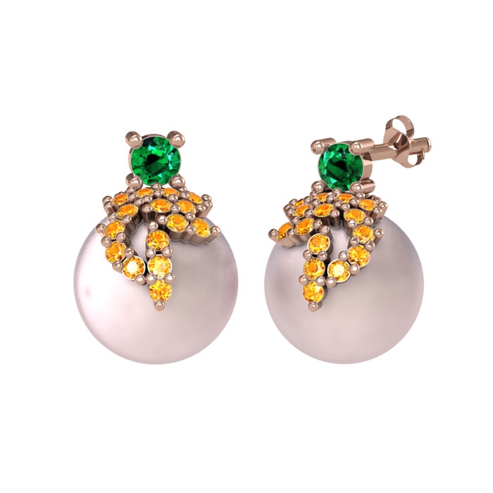 Yeşil kuvars, sitrin ve pembe inci 18 ayar rose altın küpe