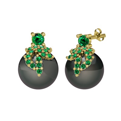 Yeşil kuvars ve siyah inci 8 ayar altın küpe