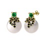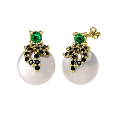 Yeşil kuvars, siyah zirkon ve inci 925 ayar altın kaplama gümüş küpe