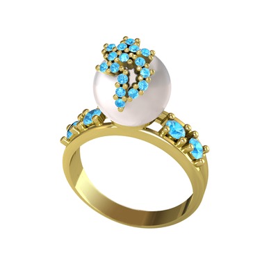 Inci ve akuamarin 14 ayar altın yüzük