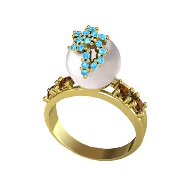 Inci, akuamarin ve dumanlı kuvars 8 ayar altın yüzük