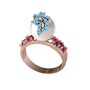 Inci, akuamarin ve rodolit garnet 14 ayar rose altın yüzük