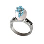 Inci, akuamarin ve siyah zirkon 14 ayar beyaz altın yüzük