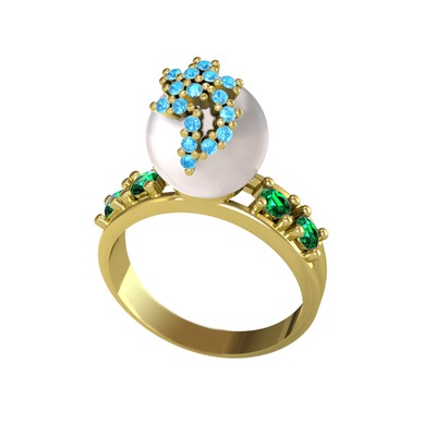Inci, akuamarin ve yeşil kuvars 14 ayar altın yüzük