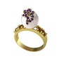 Inci, ametist ve dumanlı kuvars 14 ayar altın yüzük