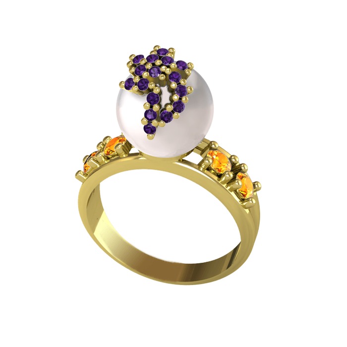 Inci, ametist ve sitrin 8 ayar altın yüzük