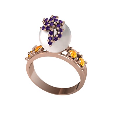 Inci, ametist ve sitrin 8 ayar rose altın yüzük