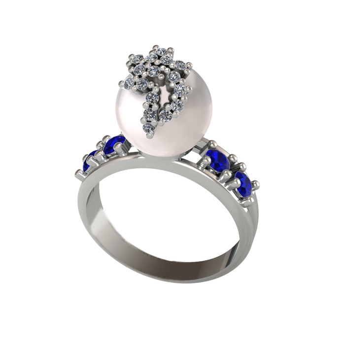 Inci, beyaz zirkon ve lab safir 925 ayar gümüş yüzük