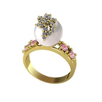 Inci, beyaz zirkon ve pembe kuvars 925 ayar altın kaplama gümüş yüzük