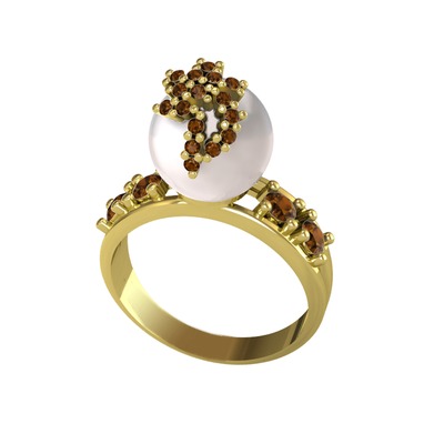 Inci ve dumanlı kuvars 14 ayar altın yüzük
