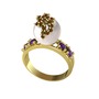 Inci, dumanlı kuvars ve ametist 18 ayar altın yüzük