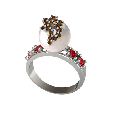 Inci, dumanlı kuvars ve garnet 18 ayar beyaz altın yüzük