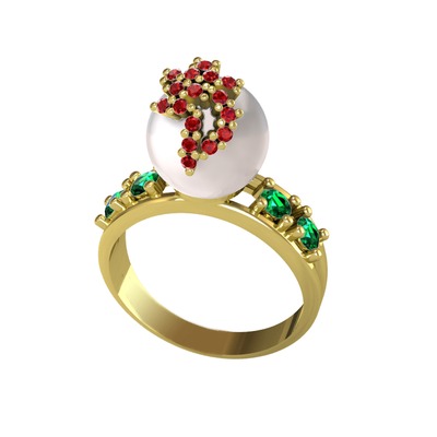 Inci, garnet ve yeşil kuvars 18 ayar altın yüzük
