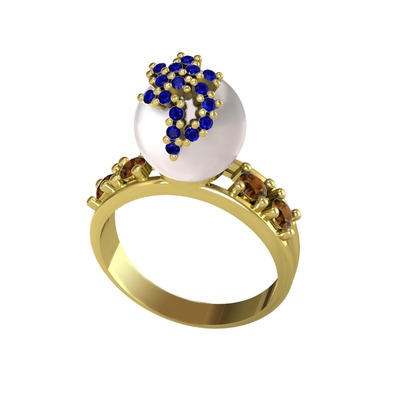 Inci, lab safir ve dumanlı kuvars 8 ayar altın yüzük