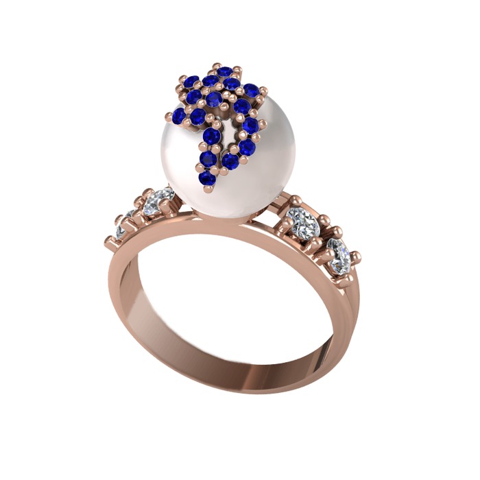 Inci, lab safir ve pırlanta 18 ayar rose altın yüzük (0.044 karat)