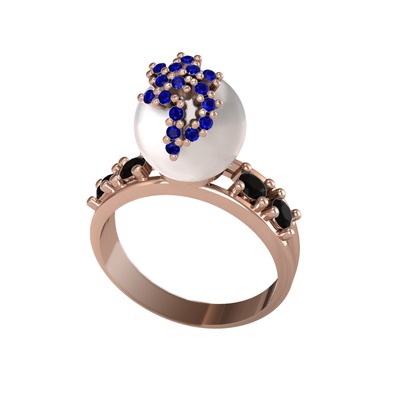 Inci, lab safir ve siyah zirkon 925 ayar rose altın kaplama gümüş yüzük