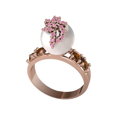 Inci, pembe kuvars ve dumanlı kuvars 8 ayar rose altın yüzük