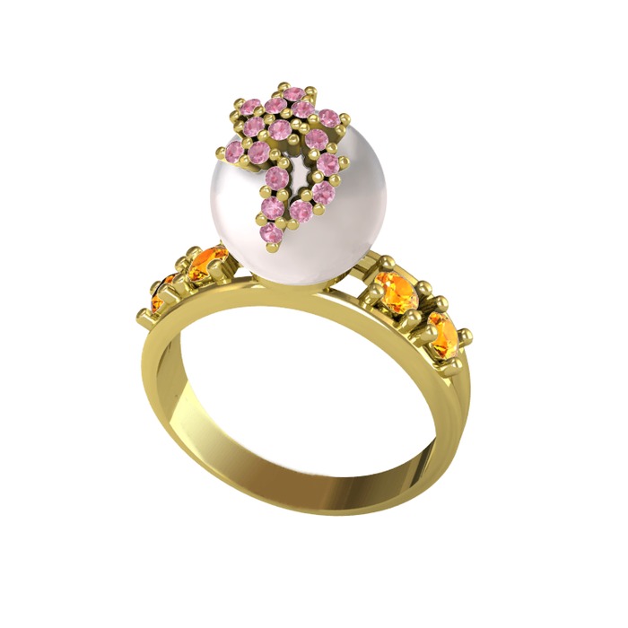 Inci, pembe kuvars ve sitrin 18 ayar altın yüzük