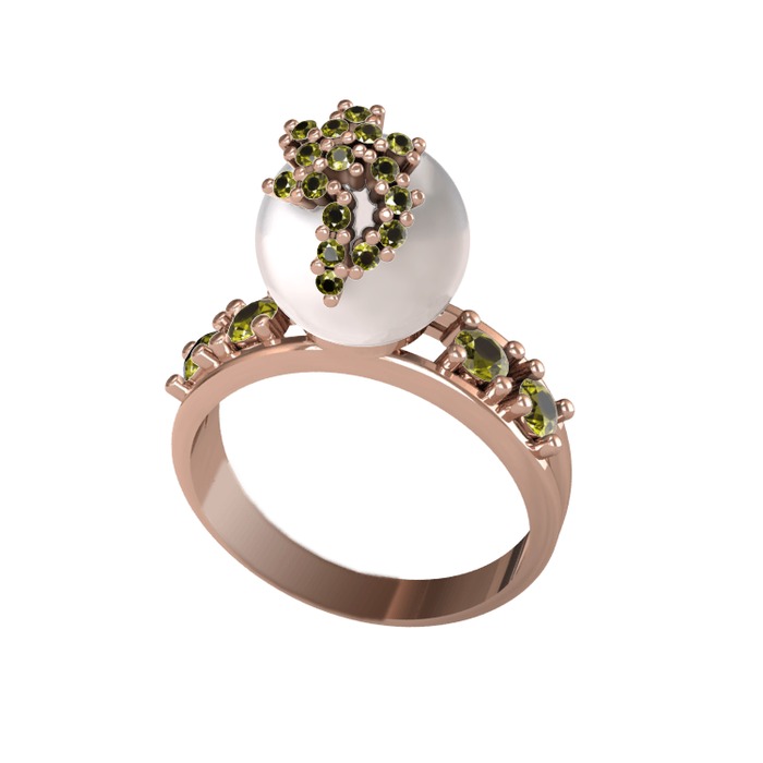 Inci ve peridot 14 ayar rose altın yüzük