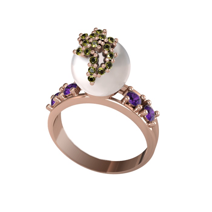 Inci, peridot ve ametist 925 ayar rose altın kaplama gümüş yüzük