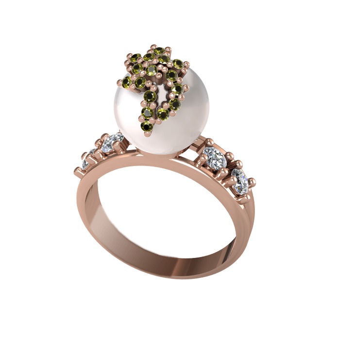 Inci, peridot ve beyaz zirkon 8 ayar rose altın yüzük