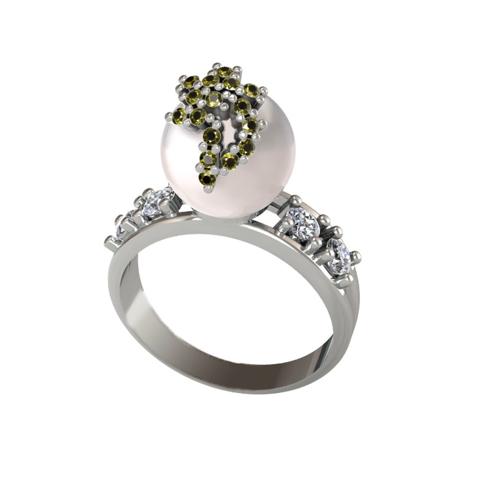 Inci, peridot ve beyaz zirkon 925 ayar gümüş yüzük