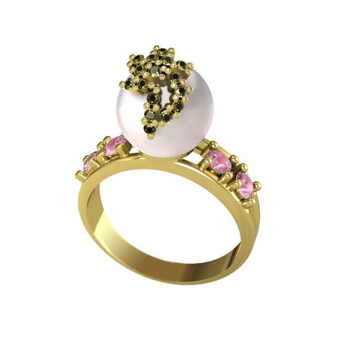 Inci, peridot ve pembe kuvars 18 ayar altın yüzük