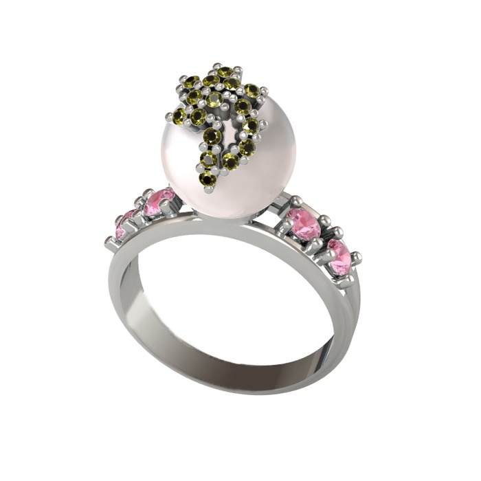 Inci, peridot ve pembe kuvars 925 ayar gümüş yüzük