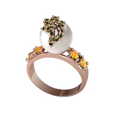 Inci, peridot ve sitrin 925 ayar rose altın kaplama gümüş yüzük