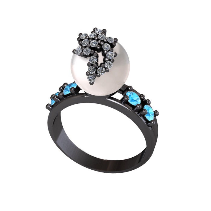 Inci, pırlanta ve akuamarin 925 ayar siyah rodyum kaplama gümüş yüzük (0.176 karat)
