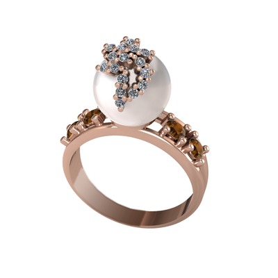 Inci, pırlanta ve dumanlı kuvars 14 ayar rose altın yüzük (0.176 karat)