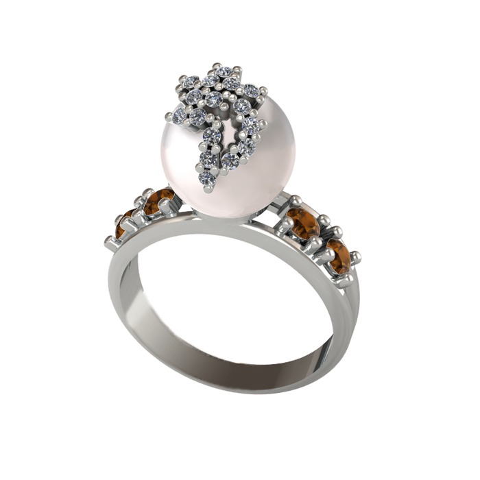 Inci, pırlanta ve dumanlı kuvars 925 ayar gümüş yüzük (0.176 karat)