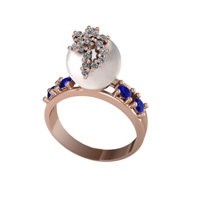 Inci, pırlanta ve lab safir 925 ayar rose altın kaplama gümüş yüzük (0.176 karat)