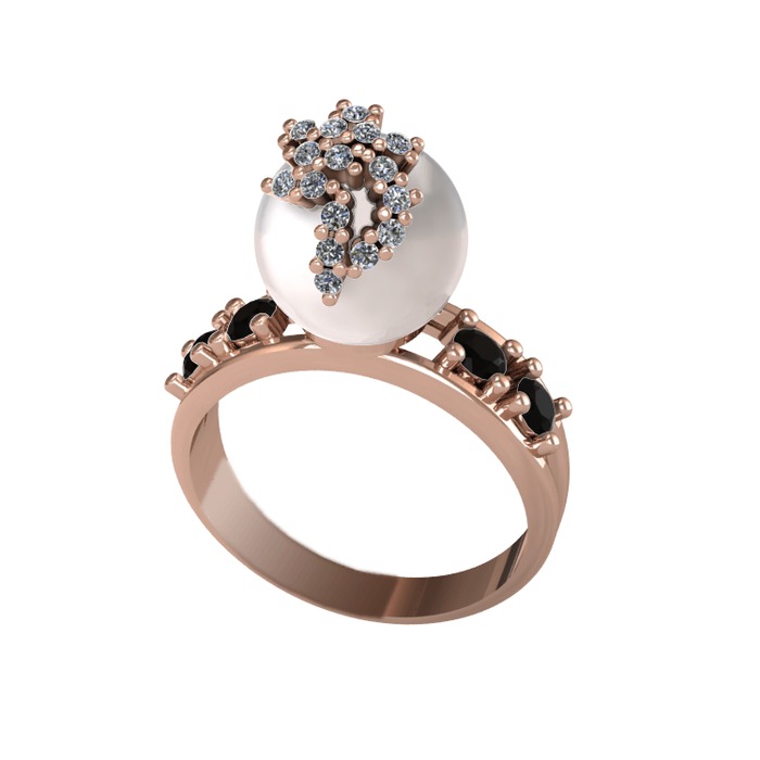 Inci, pırlanta ve siyah zirkon 14 ayar rose altın yüzük (0.176 karat)