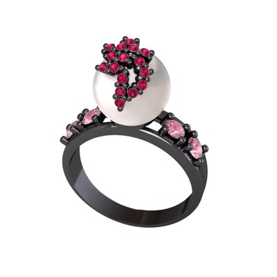Inci, rodolit garnet ve pembe kuvars 925 ayar siyah rodyum kaplama gümüş yüzük