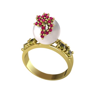 Inci, rodolit garnet ve peridot 8 ayar altın yüzük
