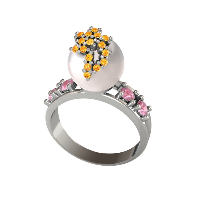 Inci, sitrin ve pembe kuvars 925 ayar gümüş yüzük