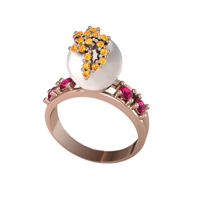 Inci, sitrin ve rodolit garnet 8 ayar rose altın yüzük