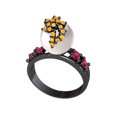 Inci, sitrin ve rodolit garnet 925 ayar siyah rodyum kaplama gümüş yüzük